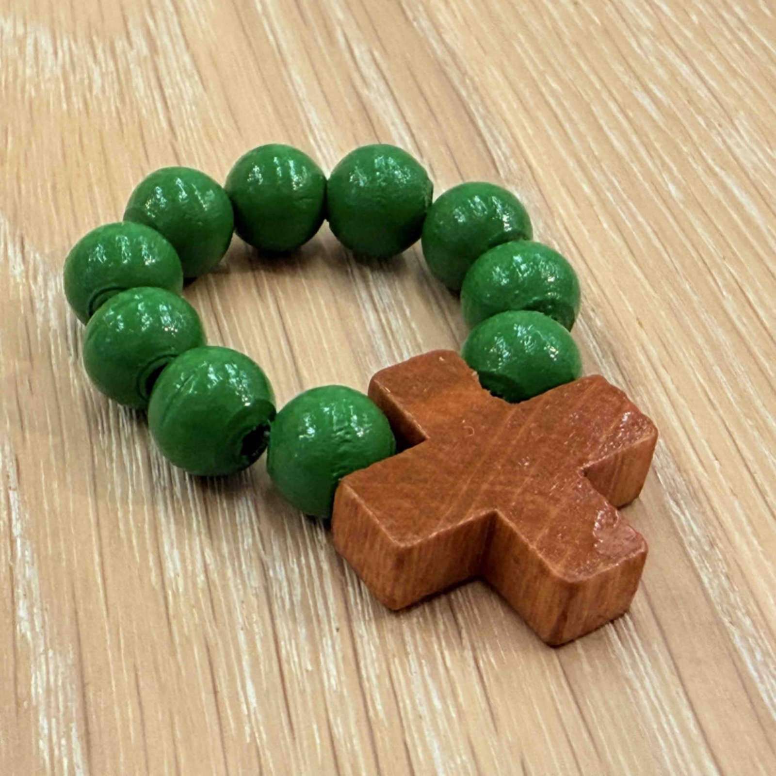 Ein schöner "Zehner" mit flexibler Bindung und herrlich-großen 8mm Holzperlen und schlichtem Holzkreuz 21mm. Die Bindung erfolgt nicht mit Gummischnur, sondern mit einem dauerelastischen Elastomer-PU, welches eine höhere Reißfestigkeit und Dauerelastizität aufweist.